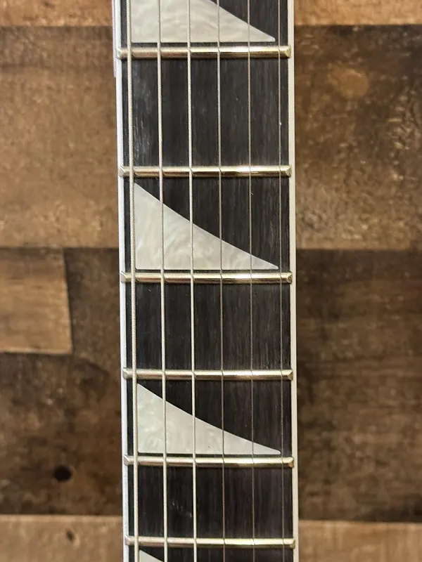 Гриф из амаранта с диапазоном радиусов 12"-16", на котором 24 джамбо лада и вставки "акульи плавники" из перлоида