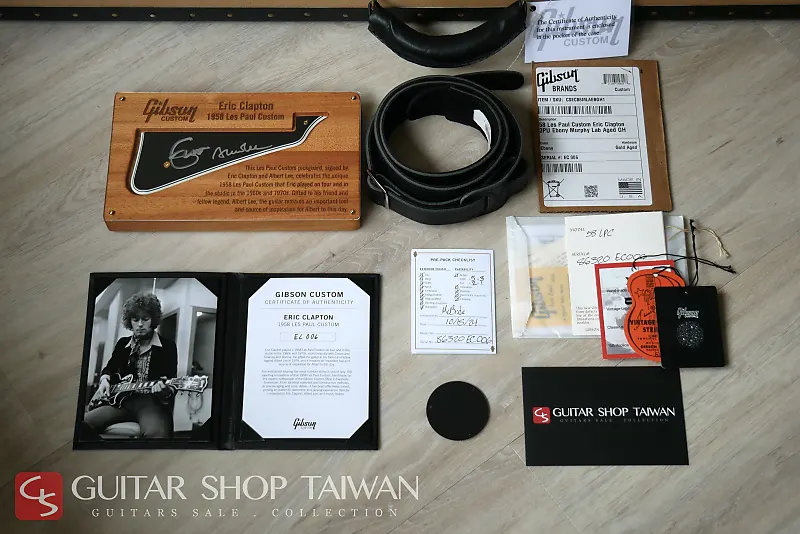 Во время первого американского тура Cream Эрик приобрел гитару Gibson Les Paul Custom 1958 года с тремя звукоснимателями, серийный номер 8 6320, которую он использовал на альбоме Disraeli Gears, во множестве турне, включая совместные гастроли с Delaney & Bonnie, а также на протяжении всего оставшегося времени 1960-х и 70-х годов. В 1979 году он подарил гитару легендарному гитаристу Альберту Ли, который до сих пор черпает вдохновение из нее и продолжает играть на ней. В настоящее время Gibson Custom с гордостью представляет гитару Eric Clapton 1958 Les Paul Custom, дань уважения оригинальной версии гитары Клэптона эпохи Cream 1958 года. Эта специальная лимитированная серия использует ультраточные методы старения Murphy Lab, чтобы помочь в ручной сборке воспроизведения этой легендарной гитары. Каждая деталь продумана до мелочей, от точного следа игры до звукового характера. Она оснащена тщательно отобранным, ультралегким, цельным корпусом из махагона, грифом из махагона с накладкой из черного дерева с индивидуальными вставками из перламутра и 22 историческими средними джамбо ладами, а также кастомным профилем грифа. Фурнитура выполнена в старом золотом цвете, включая тюнеры Grover, мост ABR-1, хвостовую деталь Stop Bar и крышки звукоснимателей. Три звукоснимателя - это нестабилизированные Custombuckers, средний звукосниматель установлен с винтами, направленными к грифу, так же, как и на оригинальной гитаре. Регуляторы громкости и тембра используют потенциометры CTS 500k с аудиофильным логарифмическим ходом, которые подключены вручную к бумажно-масляным конденсаторам, в то время как старение Murphy Lab моделирует точные шаблоны старения и износа, созданные Эриком и Альбертом.