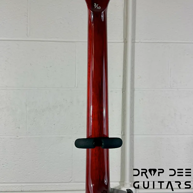 Трехсекционная шея из черной лимбы сочетается с элегантной накладкой из эбена, обеспечивая плавную и четкую игру. Тонкий контур U с 22 ладами Jescar XJ из нержавеющей стали гарантирует скорость и долговечность, в то время как длина мензуры 24,75” сохраняет классическое и привычное ощущение. Премиальные детали, такие как кость для верхнего порожка, головка грифа в цвет корпуса и графитовые усилительные стержни, добавляют стабильности, долговечности и общей утонченности этого инструмента класса «кастом».