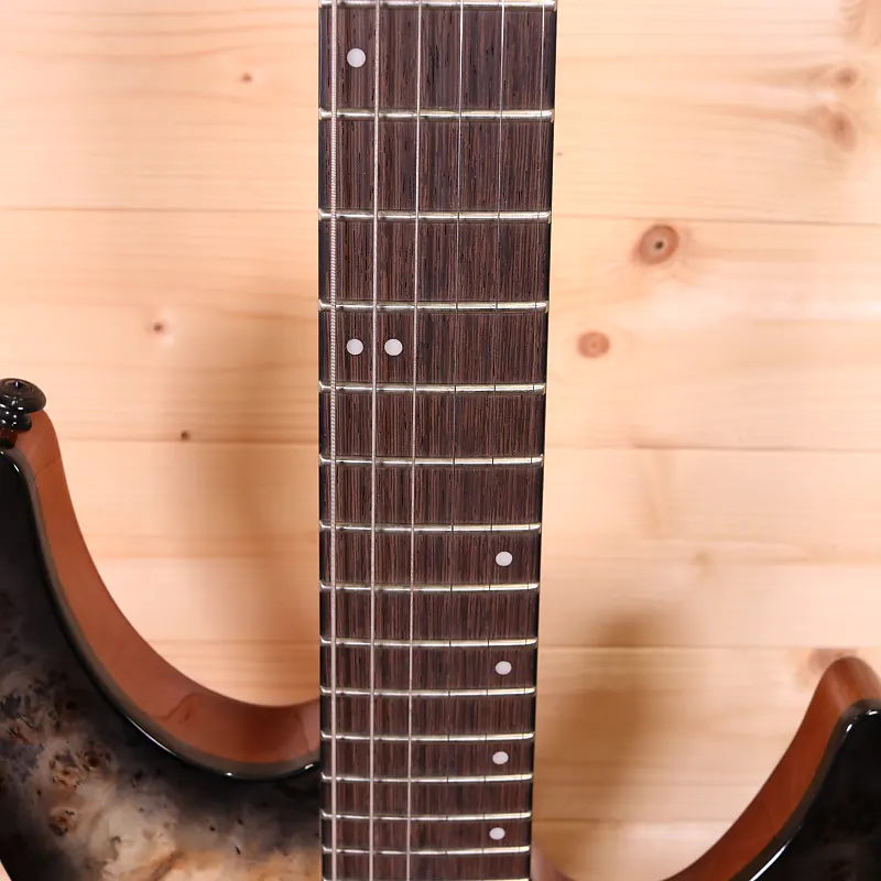 Schecter C-6 FR Pro - это ультрасовременная электрогитара, которая идеально сочетает в себе мощь, универсальность, красоту, комфорт и доступность - в равной мере. На роскошном корпусе из красного дерева красуется потрясающая верхняя дека из капового шпона, а C-6 Pro оснащена быстрым ультратонким грифом 'C' из клена с конструкцией bolt-on, придающим инструменту яркий и энергичный характер. Усиленный углеродными стержнями, гриф этой гитары чрезвычайно жесткий и гораздо меньше подвержен деформации в различных климатических условиях. Инструмент оснащен парой хамбакеров Schecter Diamond Decimator. Обеспечивая большой выход, эти звукосниматели подходят для современных высокогейновых тембров и обеспечивают отличную четкость в низком регистре. Но это не однофункциональные звукосниматели: эти хамбакеры можно переключать на одиночную катушку с помощью функции push/pull на регуляторе громкости, что идеально подходит для кристально чистого звучания.