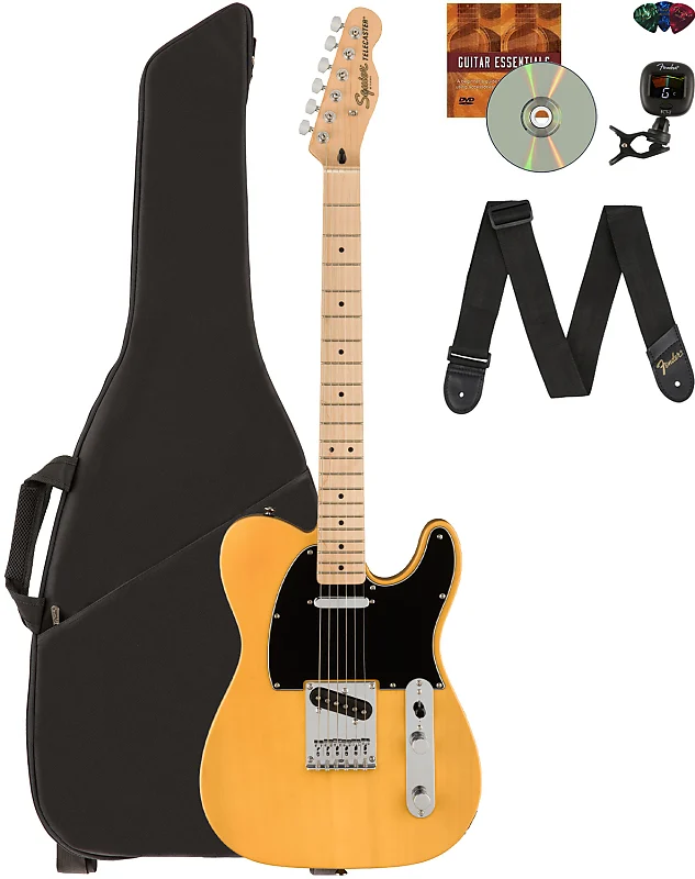 Fender Squier Affinity Telecaster - Бандл в цвете Butterscotch Blonde с чехлом, тюнером, ремнем, медиаторами и учебным DVD от Austin Bazaar