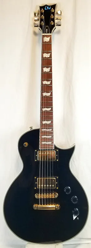 Электрогитара ESP LTD EC-256, корпус из красного дерева, накладка грифа из жакоба, черный глянцевый с золотой фурнитурой