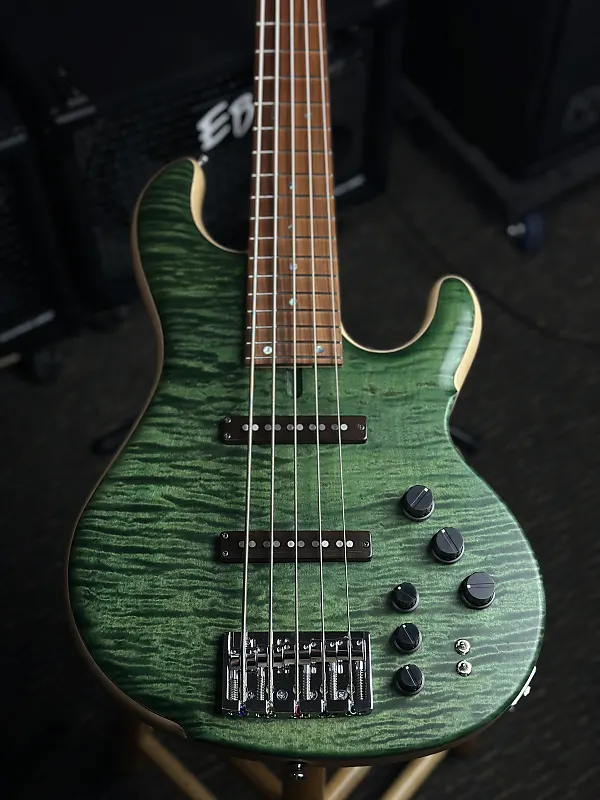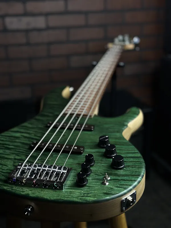 Он имеет корпус из клена с фактурой пламени, верхнюю дека из клена с фактурой пламени и гриф из клена.