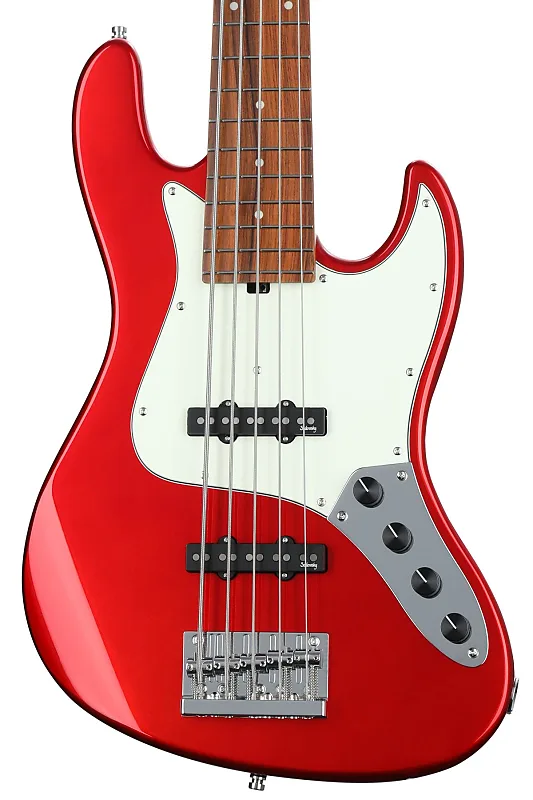 5-струнный электрический бас с корпусом из окоуме, грифом из клена, накладкой на гриф из пау ферро, 2 сингл-койл звукоснимателя и активной электроникой - металлический красный цвет Candy Apple.