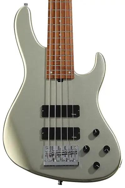 5-струнный электрический бас с цельным корпусом из окуме, гриф из клена, накладка на гриф из клена, 2 хамбакерных звукоснимателя и активная электроника - шампанское металлический.