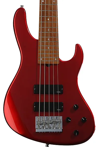 Электрический бас-гитара с 5 струнами, цельным корпусом из окоуме, гриф из клена, накладка на гриф из клена, 2 хамбакер-пикапа и активная электроника - Candy Apple Red.