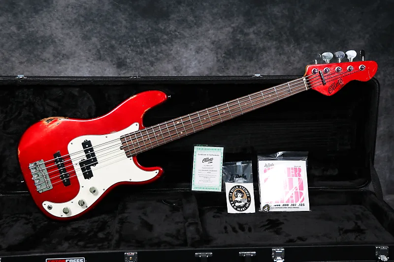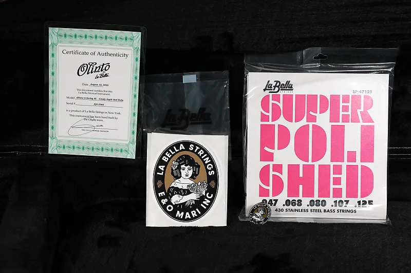 Совершенно новый бас Olinto 5-струнный PJ в цвете Candy Apple Red с подходящей накладкой грифа. Корпус из ольхи, гриф из клена и накладка из темного мадуласийского розового дерева. Помимо отличного звучания, этот бас выглядит потрясающе; отделка Candy Red просто великолепна! Бас доставляется в жестком кейсе Gator GWE-BASS и поставляется с сертификатом подлинности, комплектом струн La Bella Super Polished, наклейкой и значком La Bella, а также шестигранным ключом.