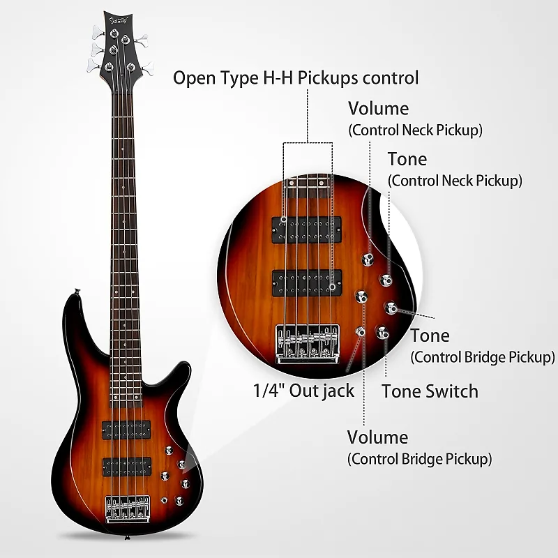 Изготовленный из цельного корпуса из басовой древесины, грифа из клена и накладки из лаврового дерева, этот бас-гитар обеспечивает яркое, чистое звучание и отличный сустейн. Поставляется в полном комплекте, обеспечивая удобство в использовании.