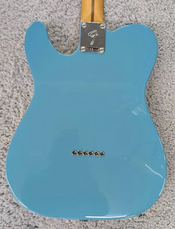Гитара Fender Player II Telecaster, накладка на гриф из розового дерева, цвет Aquatone Blue - MIM. Butler Music теперь имеет в наличии все 79 моделей новой серии Player II, при этом большинство моделей доступны в нескольких экземплярах. Чтобы точно передать качество этих отличных обновленных моделей, мы будем использовать реальные фотографии каждой гитары, которую публикуем, отправлять их настроенными и готовыми к игре, а также указывать вес каждой гитары или баса, чтобы вы точно знали, что получите. Эта гитара имеет серийный номер MX24102395 и весит 7 фунтов 6,52 унций. Абсолютно новая серия Player II развивает чрезвычайно популярную формулу Player. Новые особенности Player II включают никогда ранее не используемые винтажные автоцвета, накладки на гриф из розового дерева, усовершенствованные мосты и фурнитуру, закругленные края грифа, новый оттенок грифа, состаренные пластиковые детали, а также новые варианты древесины корпуса из резонирующей эстрадной ясеневой и камерованной красного дерева. Сохраняя суть того, что сделало оригинальную серию великой - Player. Звукосниматели, современные грифы формы «C», накладки грифов радиусом 9,5 дюйма и средне-джамбо лады - новая серия Player II расширяет эту прочную основу широким спектром обновлений и новых опций. Разработанная для музыкантов, готовых сделать следующий шаг в своем музыкальном пути, Player II становится новым эталоном доступного качества и производительности. Вот некоторая информация об этой конкретной гитаре.Корпус - Ольха Отделка корпуса - Глянцевый полиэстер Aquatone Blue Гриф - Клен - современная форма «C» Отделка грифа - сатиновое уретановое покрытие на задней части грифа и глянцевое уретановое покрытие на головке грифа Накладка грифа - цельная розовое дерево, радиус 9,5” (241 мм) Лады - 22, средне-джамбо Маркировка позиций - белые точки Материал и ширина порожка - синтетическая кость, 1,650” (42 мм) Колки - классические механики Fender Длина мензуры - 25,5” (64,77 см) Бридж - Tele с шестью седлами и стальными блок-седлами, струны проходят через корпус Задняя панель - 3-слойная бумага цвета пергамент Звукосниматели - Player II Series Alnico 5 Tele, сингл-кoйлы Переключатель звукоснимателей - 3 положения Рукоятки управления - Главный уровень громкости, Основной тон Регулировочные ручки - Рифленые с плоской верхней частью Аппаратура/отделка - Никель/хром Струны - Fender USA 250L, сталь с никелевым покрытием, .009-.042 Чехол или сумка - ОТСУТСТВУЕТ