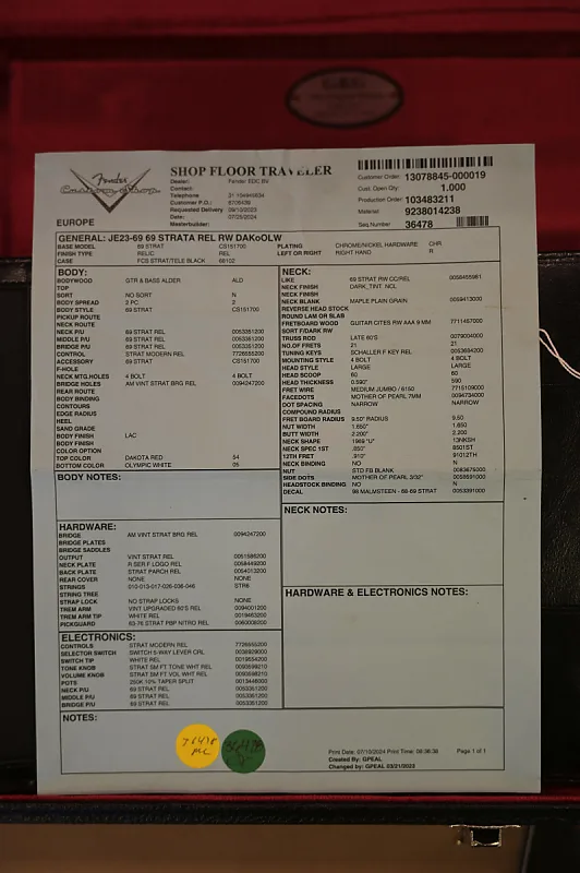 • Модель: Custom Shop '69 Reissue Stratocaster Relic