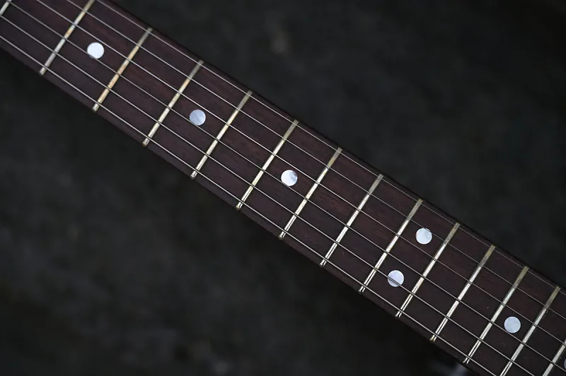 Аутентичный изношенный вид гитары, которая много лет использовалась в клубах и барах. Следы, которые рассказывают историю, трещины в покрытии по всему корпусу, а также царапины, вмятины и следы от ударов от бриджа до головки грифа.