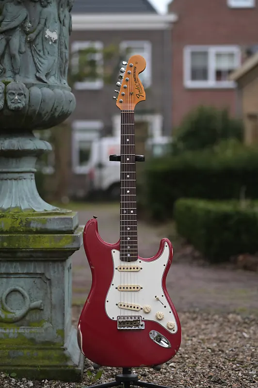 Fender Custom Shop '69 Stratocaster, Релик - Дакота Рэд поверх Олимпийский Белый