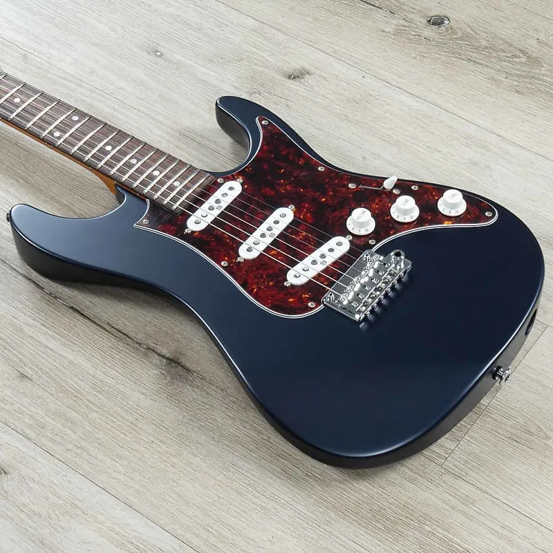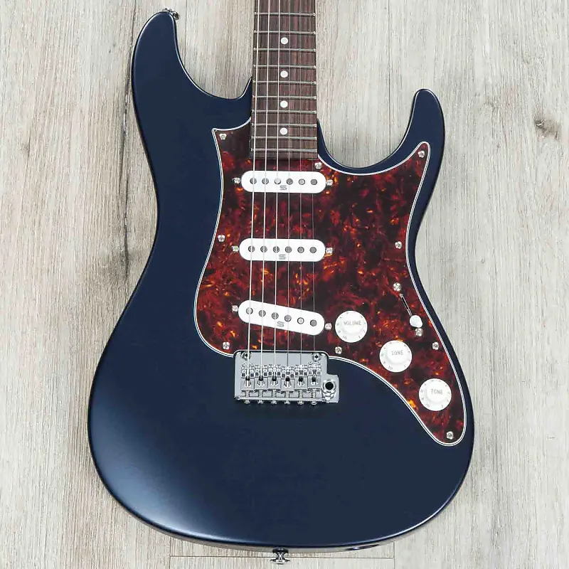 Новая AZ2203NT, примером которой является эта прекрасная модель в цвете Dark Tide Blue Flat с черепаховой накладкой, непринужденно возвращается к винтажному звучанию, предлагая знакомую конфигурацию с тремя одинарными звукоснимателями. Она отсылает к винтажным гитарам типа "S" 1960-х годов с ее винтажными кнопками на замковых колках Gotoh, грифом из палисандра и планкой с тремя регуляторами, гармонирующими с трио одинарных звукоснимателей.