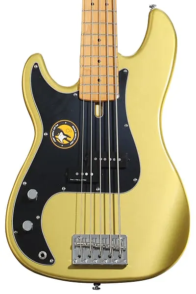 5-струнный электрический бас-гитар, леворукий, с корпусом из ольхи, грифом из клена, накладкой из клена и одним раздельным звукоснимателем - металлическое золото.