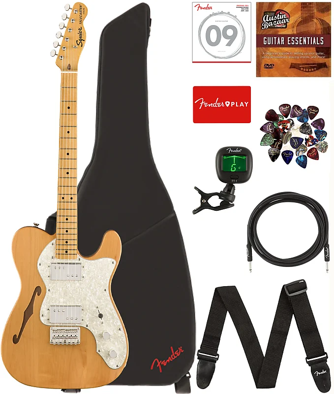Fender Squier Classic Vibe '70s Telecaster Thinline - Натуральный Комплект с Чехлом, Кабелем для Инструмента, Тюнером, Ремнем, Струнами, Медиаторами и Обучающим DVD от Austin Bazaar