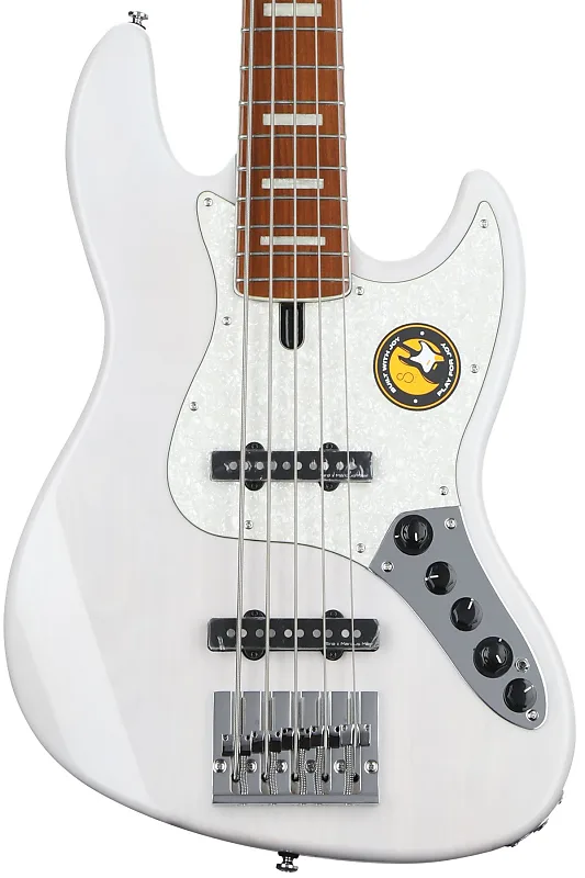 Электрический бас-гитар 5 струн с корпусом из ясеня, гриф из клена, накладка на гриф из клена и 2 сингл-койл звукоснимателя - белый блонд.