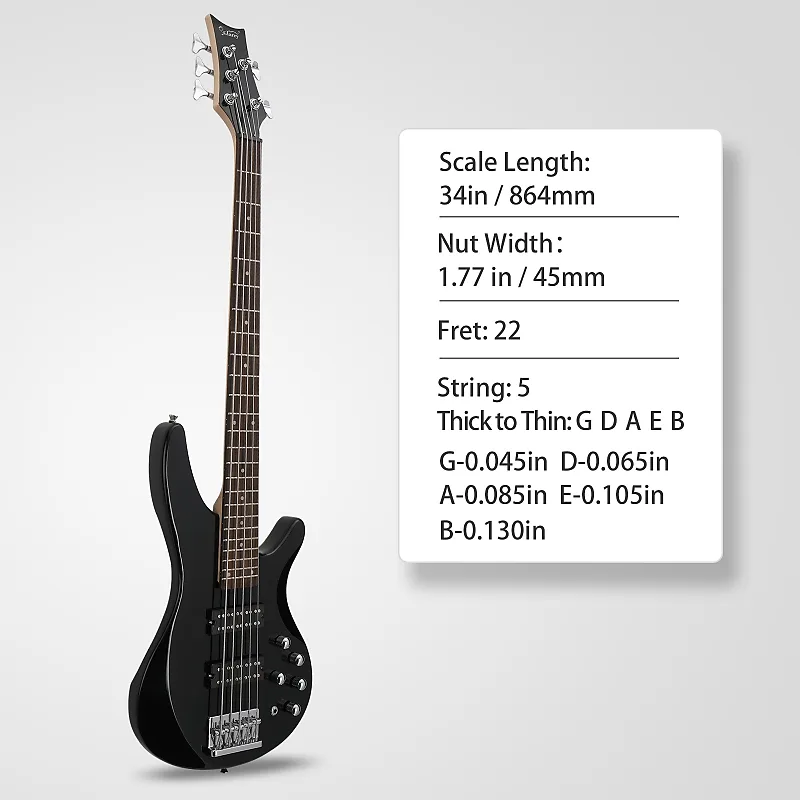 С 5 струнами от B до G вы можете играть более разнообразные стили. Диапазон струн от тонкой до толстой: G-D-A-E-B.