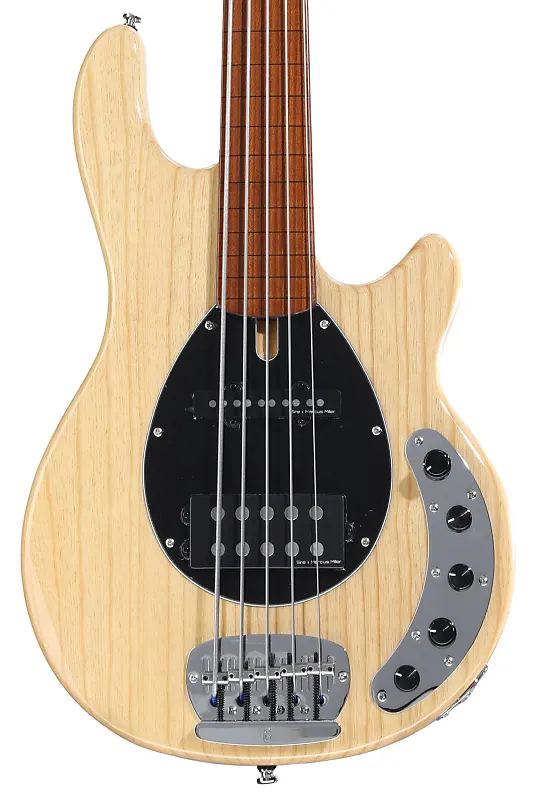 5-струнная безладовая электрическая бас-гитара с корпусом из ольхи, грифом из клена, фантазийной накладкой из жареного клена, активным предусилителем, одним хамбакером и одним сингл-койл-пикапом - натуральный цвет.