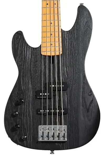 Электрический бас-гитара с 5 струнами, для левшей, корпус из красного дерева, верхняя дека из ясеня, гриф из клена, клавиатура из клена, и 2 сингловых звукоснимателя - черного цвета.