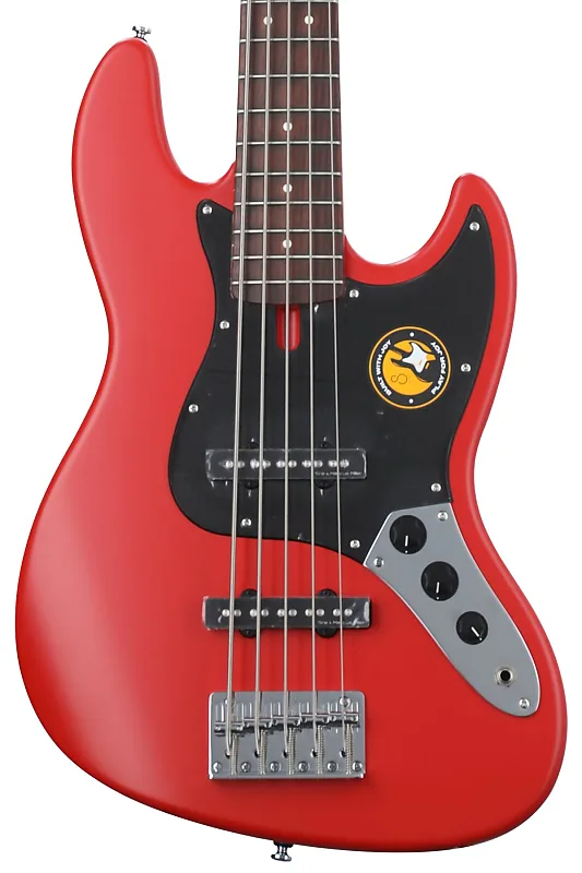 5-струнная электрическая бас-гитара с корпусом из красного дерева, грифом из клена, накладкой на гриф из палисандра и двумя сингловыми звукоснимателями - красный сатин.