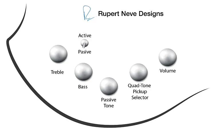 Три неодимовых звукоснимателя Dingwall подключены к переключателю Quad-Tone, основному регулятору громкости, основному регулятору тембра и 2-полосный активный эквалайзер, работающий с предусилителем высочайшего качества от Rupert Neve Designs. «Прорывной сингл Duran, заглавная композиция с альбома 1982 года Rio, изначально был записан на микшерском пульте Neve, так что история здесь уже присутствовала, - говорит Шелдон. - Но команда Rupert Neve Designs полностью достигла нужного тембра.»