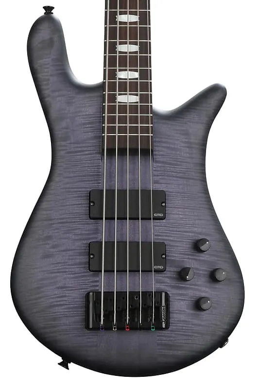 Электробас-гитара с 5 струнами, корпус из цельного европейского ольхи, верхняя дека из кленового дерева с рисунком «пламя», гриф из клена, накладка грифа из палисандра и 2 активные хамбакер-про pickups - Nightshade.