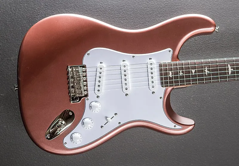 Другие высококачественные характеристики включают костяную гайку, литую металлическую пластину домкрата (изогнутую для облегчения подключения и отключения гитарного кабеля), переделанные ручки и стержень фермы двойного действия PRS (доступный с передней части головки грифа для удобства использования). Чехол премиум-класса PRS в комплекте».