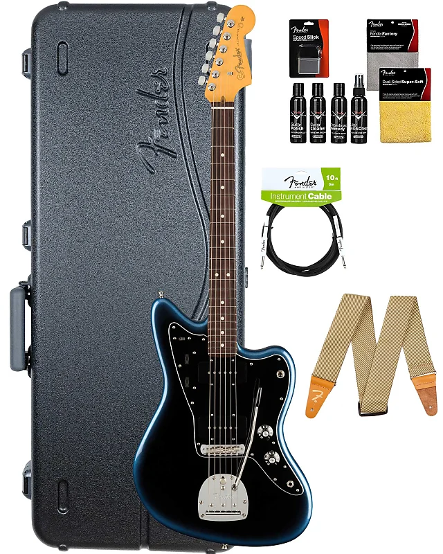 Fender American Professional II Jazzmaster - Dark Night комплект с чехлом, ремнем, кабелем и набором для чистки гитары