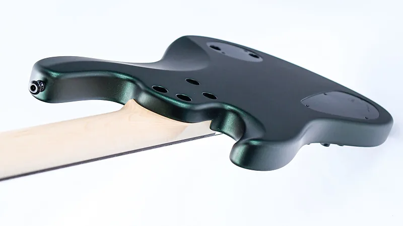 Этот Super J имеет сатиновое покрытие Candy Green и выглядит особенно эффектно с матовой черной фурнитурой и накладкой на корпусе. Цельный кленовый гриф оснащен накладкой из венге с инкрустацией из перламутра, а заметной особенностью является выемка на головке грифа, которая уменьшает его вес и дополнительно оптимизирует баланс. Бас поставляется с паспортом TFOA в роскошном чехле для перевозки.