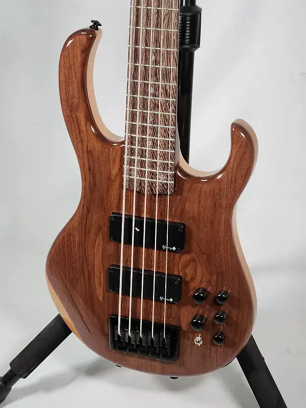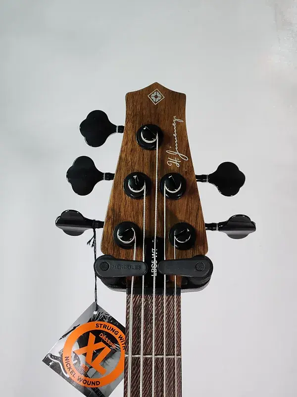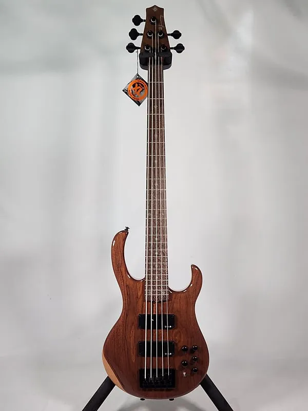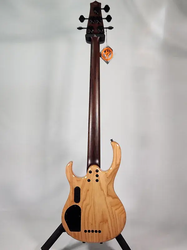 Бас-гитара с 5 струнами Natural Walnut - Глянцевая крышка из натурального ореха на корпусе из ясеня, крепление шеи на болтах из венге с грифом из венге на 24 лада с отметками DayStars, струны через корпус, черная фурнитура, удобная ширина грифа 45 мм, 2 широких звукоснимателя типа Soap Bar, активный/пассивный эквалайзер с мини-переключателем, в комплекте премиальный мягкий кейс Moonwalk.
