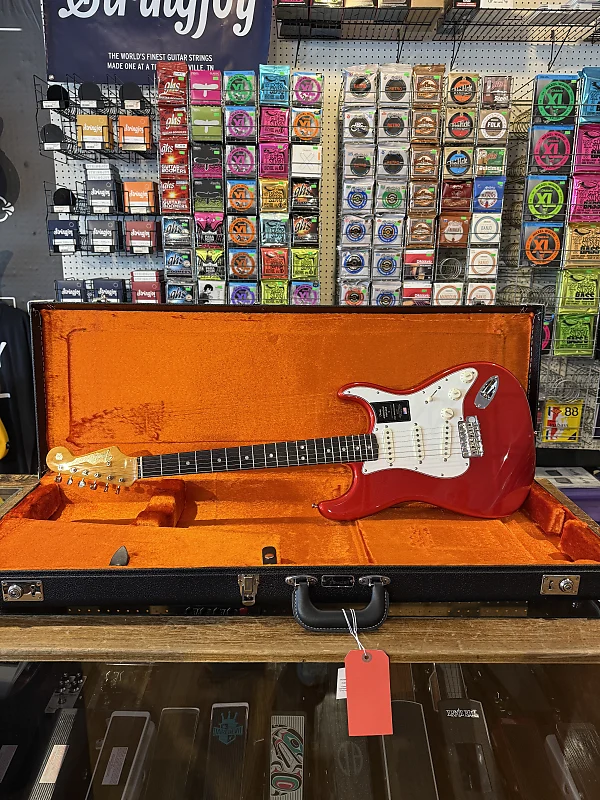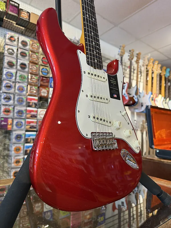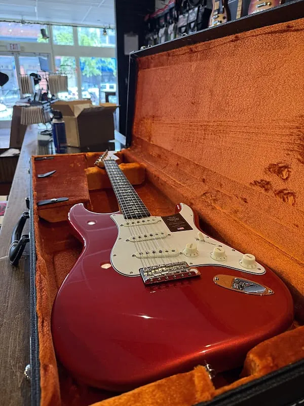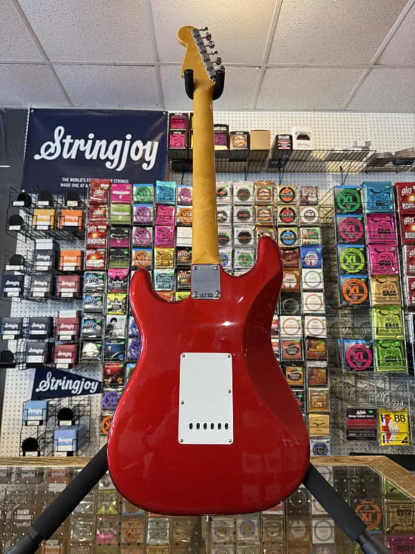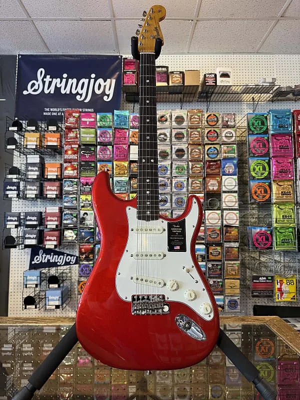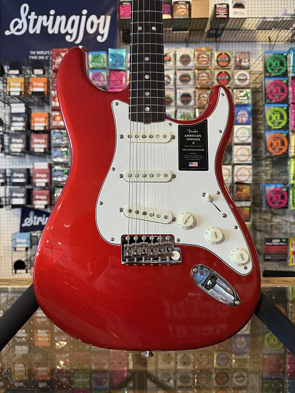 Совершенно новый пример Fender American Vintage II '65 Re-issue Stratocaster в отделке Candy Apple Red.