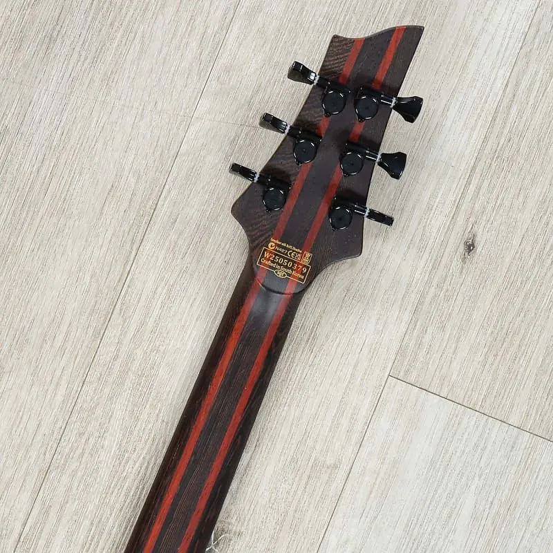 В этих инструментах Браун и Schecter выбрали удачное сочетание корпуса из легкого болотного ясеня (с великолепной натуральной задней частью!) и верхней деки из клена с «пламя»-фигурой. Эти тоновые породы обеспечивают потрясающую ясность и акцент на средние частоты в акустическом звучании, что передается и при игре с подключением: хороший резонанс и сустейн. Гриф из венге/падаука и накладка из черного дерева прекрасно дополняют эти материалы как визуально, так и акустически. В целом, эта гитара обладает высокой резонансностью и акцентом на средние частоты, что особенно важно при толстом звуковом дисторшне, особенно на низких струнах для мощных рифов. Завершающим эстетическим штрихом является озоновый бурст поверх кленовой деки на головке грифа, что создает целостный внешний вид. весь инструмент.