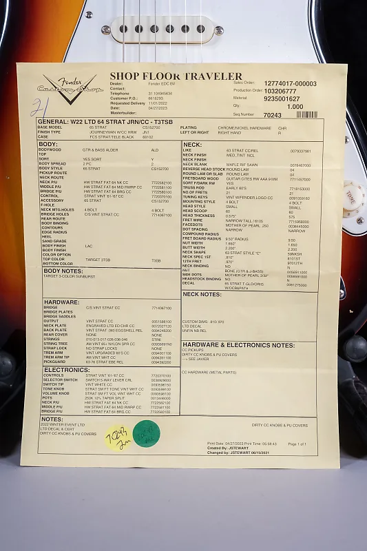 Fender Custom Shop 64 Stratocaster Journeyman Target в расцветке 3Tone Sunburst
