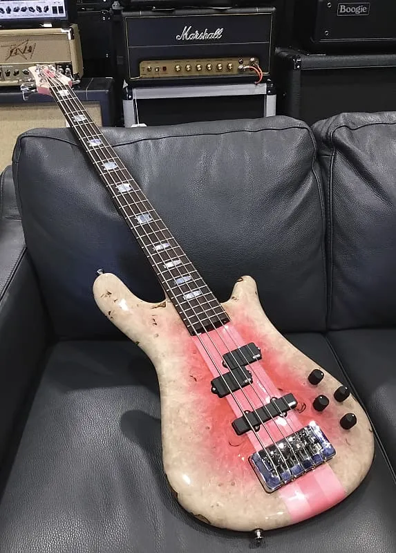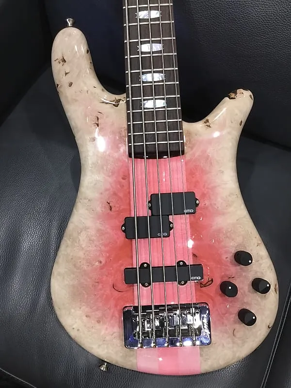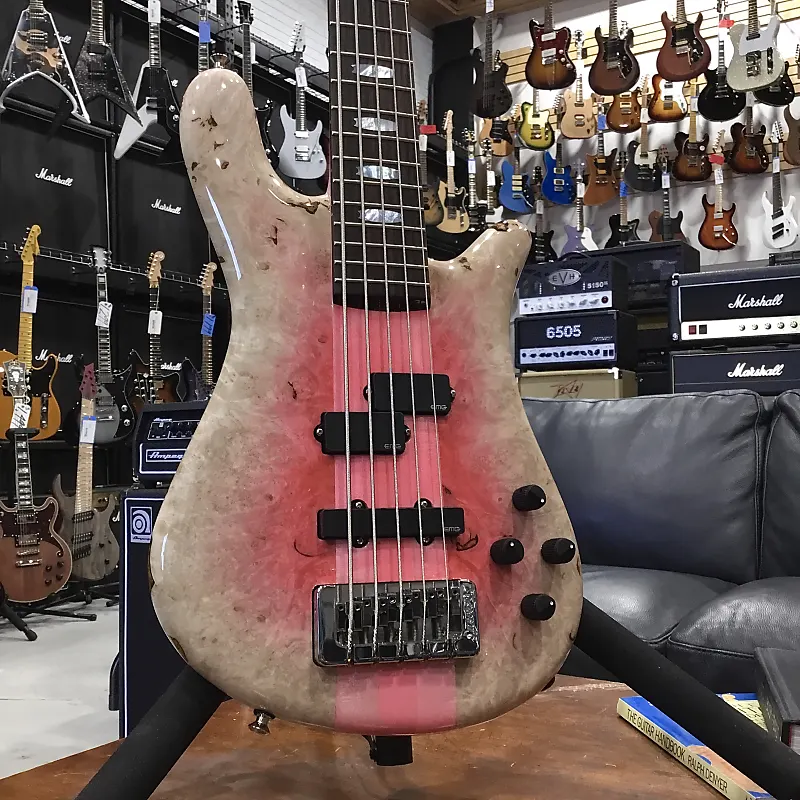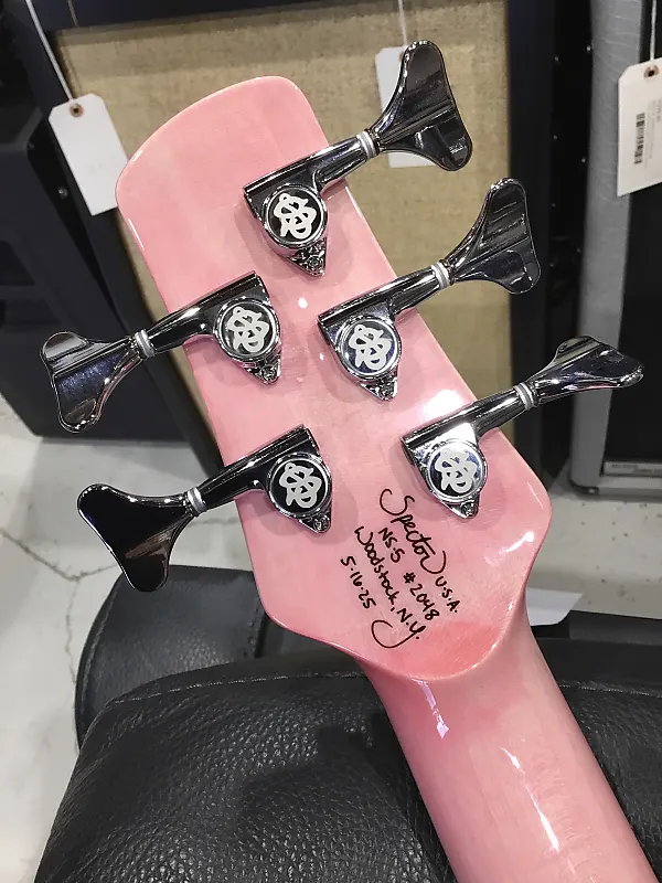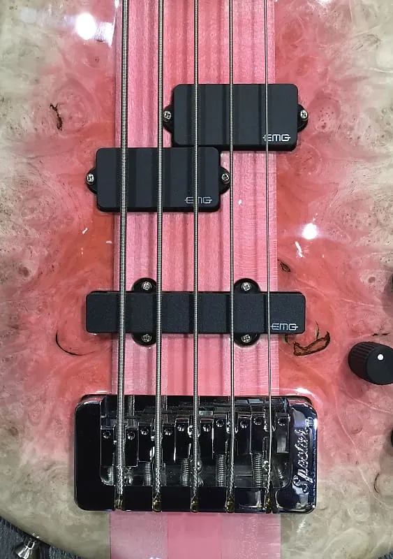 Спасибо, что ознакомились с нашим индивидуальным, полностью укомплектованным NS-5 от наших друзей из Spector! Это все, что вы могли бы пожелать от глянцевого, великолепного NS-5 в цвете «Pink Reverse Burst», который Spector демонстрировали на NAMM 2025 - но с установленным EMG P5 на грифе для получения высоко артикулированного, теплого звучания верхних и нижних частот, и EMG SJ5 на мосту, чтобы улучшить гармонические обертоны, а также отклик средних и низких частот.