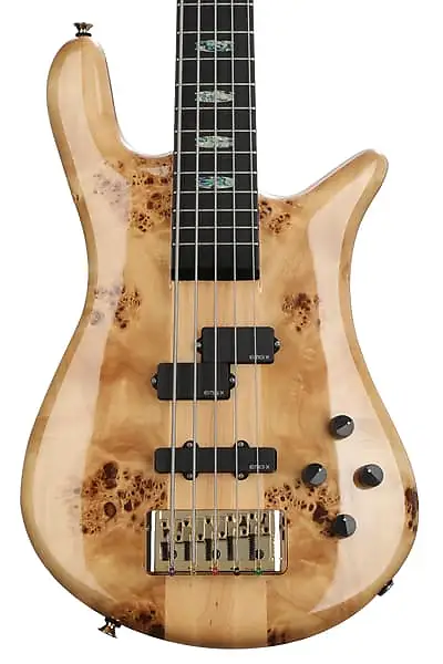 5-струнный электрический бас с корпусом из цельного европейского ясеня, верх из капа тополя, гриф из клена, активные звукосниматели типа P и J и 2-полосный предусилитель - натуральный.