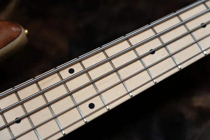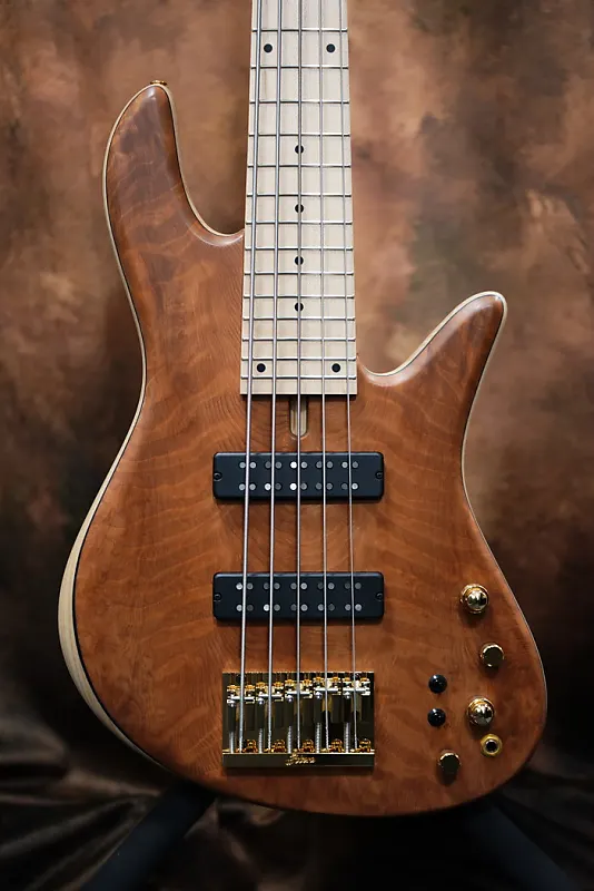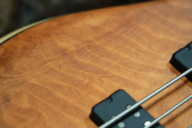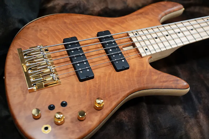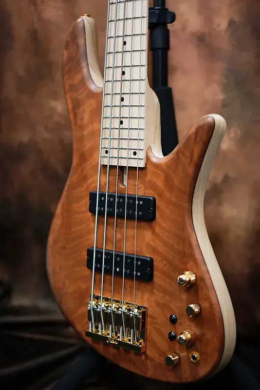 С кленовой ладовой доской и корпусом из ясеня стандартные двухкатушечные звукосниматели Fodera Duncan расположены так, что они находятся в той же позиции, что и у джаз-баса 70-х годов при переключении катушек.