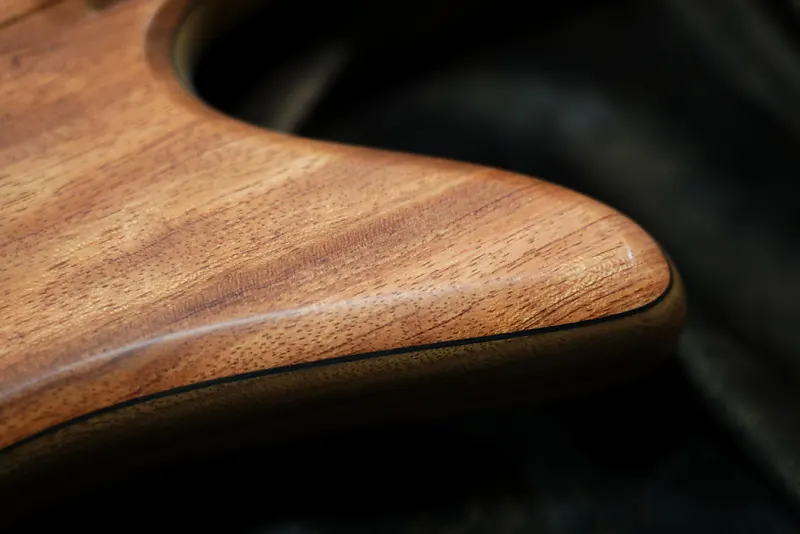 Что касается деталей, позиции точек на грифовой накладке из эбена также тайно выполнены из бубинги.
