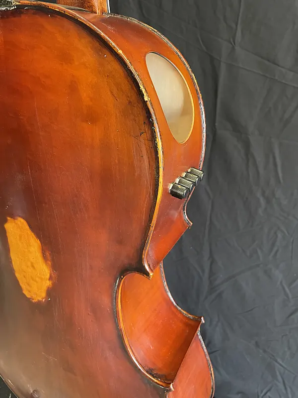 Этот инструмент новостроенный, ручной работы, но основан на существующем корпусе виолончели. Отделка - Antique, что означает, что инструмент выполнен с эффектом старения/ношенности, вдохновленный вековыми струнными инструментами.
