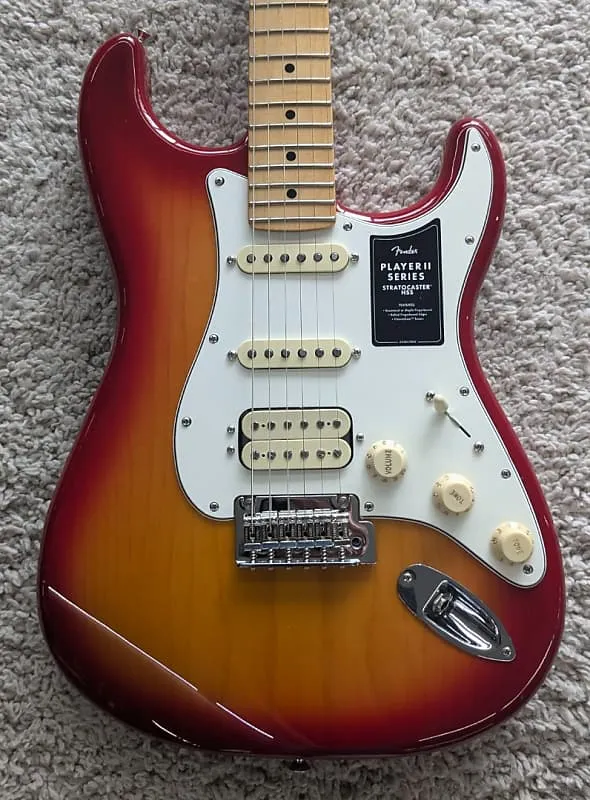 Fender Player II Stratocaster HSS, гриф из клена, отделка Aged Cherry Burst - MIMСовершенно новая модель к зиме 2024 года! Butler Music теперь имеет в наличии все 79 моделей новой серии Player II, при этом большая часть моделей представлена в нескольких экземплярах. Чтобы точно передать качество этих обновленных моделей, мы используем реальные фотографии каждой гитары, которые публикуем, а также отправляем их настроенными и готовыми к игре, включая указание веса каждой гитары или баса, чтобы вы точно знали, что получите. Эта модель имеет серийный номер MXS24047710 и весит 6 фунтов 11,9 унции.Новая серия Player II развивает уже чрезвычайно популярную формулу Player. Новые особенности Player II включают ранее не использовавшиеся винтажные автоцвета, грифы из розового дерева, усовершенствованные мосты и фурнитуру, закругленные кромки грифа, новый оттенок шеи, состаренные пластиковые детали, а также новые варианты корпуса из резонансного камерного ясеня и камерного махагони. При этом сохраняется суть того, что делало оригинал популярным. серия отличная - звукосниматели Player, современные грифы формы „С“, радиус накладки 9,5” и лады среднего размера, новая серия Player II расширяет эту прочную основу, предлагая широкий спектр улучшений и новых опций. Созданная для музыкантов, готовых сделать следующий шаг в своем музыкальном пути, серия Player II становится новым эталоном доступного качества и производительности. Вот некоторые сведения об этой конкретной гитаре: Корпус - полый ясень Отделка корпуса - блестящий полиэстер в стиле старинного вишневого градиента Гриф - клен - современная форма „С“ Отделка грифа - сатиновый уретан на тыльной стороне грифа и глянцевый уретан на передней Накладка грифа - клен, радиус 9,5” (241 мм) Лады - 22, размер средний джамбо Маркировка позиций - белые точки Материал и ширина верхнего порожка - синтетическая кость, 1,650” (42 мм) Колки - классические колки Fender Mensur - 25,5” (64,77 см) Мост - двухточечный синхронизированный тремоло с седлами из выгнутой стали Пикгард - трехслойный пергамент Звукосниматели - Humbucker Alnico 2 Player Series бриг, синглы Player II Series Alnico 5 Strat на среднем и шейном положении Переключатель звукоснимателей - 5-позиционный Регуляторы - Общая громкость, Тембр 1, Тембр 2 Ручки - Пластик состаренного белого цвета Фурнитура/Отделка - Никель/Хром Струны - Fender USA 250L, никелированная сталь, 0.009-0.042 Чехол или сумка - НЕТ