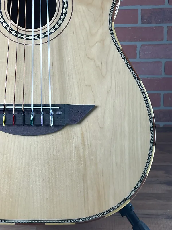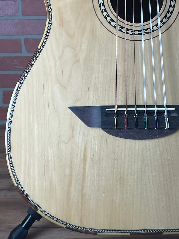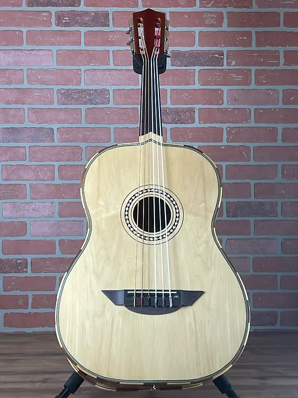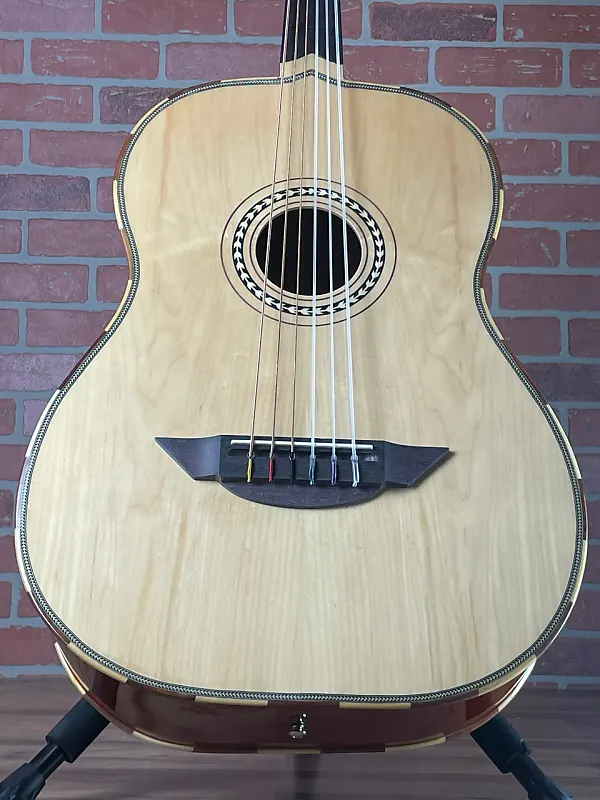 Гитара H. Jimenez guitarrón обеспечивает надежность и долговечность в одном инструменте. Края корпуса выполнены традиционной ручной сборкой из чередующихся кленовых и махагоновых элементов. Задняя и боковые части изготовлены из ламинированного луан, а передняя панель - из прочного ламинированного липового дерева. Гриф Ovangkol имеет фирменный лазерный логотип H. Jimenez и розетку в виде стрелы. Специально разработанный мостовой седло Ovangkol Thunderwing обеспечивает оптимальное натяжение струн. Очень плавные колки делают настройку инструмента легкой и точной.