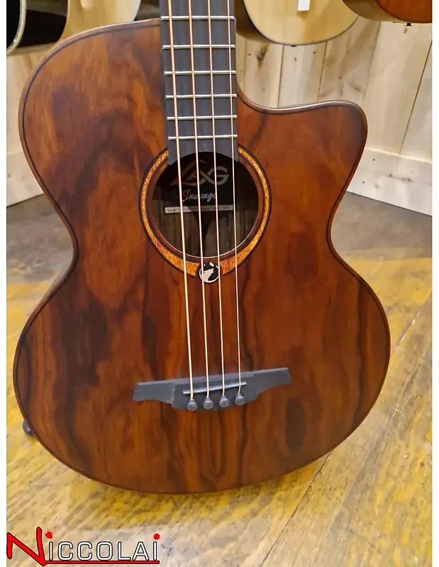 После выпуска первой Lag Sauvage в 2022 году, серия Sauvage расширяется включением все форматы, а также предлагает электрифицированные модели с популярными системами Lag. Lag. SAUVAGE-BCE - это акустический бас-гитар Jumbo Cutaway, выделяющийся используемыми породами древесины. Светлый брэнко-вуд, использованный для массивной верхней дека, сертифицирован FSC (Совет по ответственному лесоуправлению) и, кроме того, что является экологически безопасным, устойчив к изменениям температуры и влажности, что делает бас очень стабильным. Дымчатый эвкалипт, с его грубой текстурой, придает басу естественный и дикий вид. Все эстетические особенности, которые делают инструменты Lag узнаваемыми, присутствуют, такие как форма головки грифа и мостика, черные колки, овальная форма розетки с новым логотипом серии Sauvage и скосы с культовой черной полосой. Форма Jumbo обеспечивает этой гитаре высокую громкость и отличную проекцию, что делает ее особенно подходящей для аккомпанемента перебором. Она оснащена системой Stage-Lag с регуляторами громкости, низких, средних, высоких частот и селектором частоты с вырезом, а также переключатель фаз и тюнер. Комплектуется новой дизайнерской сумкой для концертов Sauvage, что делает этот бас подходящим для любой поездки.