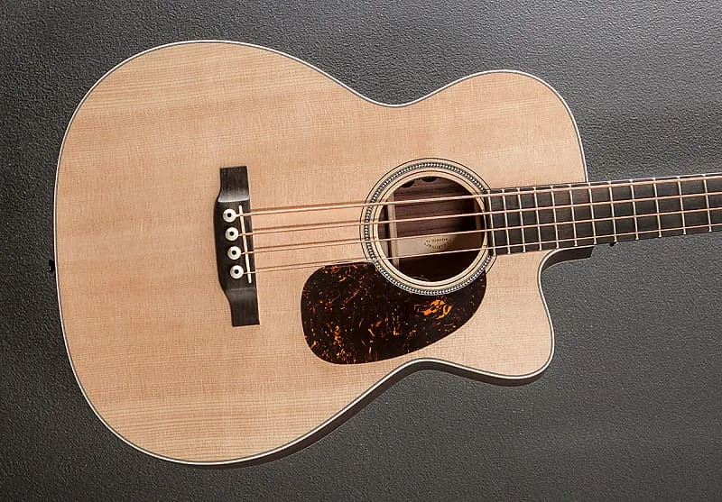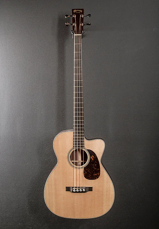 Естественный цвет, форма корпуса с вырезом M-14 (0000-14 Fret cutaway), верхняя дека из массива ели Ситка, смелая геральдическая розетка из многополосной вставки, скошенные и сдвинутые X-образные усилители, задняя часть и стороны из массива розового дерева Восточной Индии, антикварная белая окантовка с многополосной вставкой на верхней деке, пальчиковая доска из черного дерева на бас-гитаре с грифом стандартного конического профиля из выбранного твердого дерева, длина мензуры 34”, ширина ноты 1 9/16”, с пьезозвукоснимателем Martin E1. система и мягкий чехол Martin