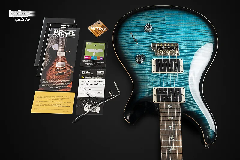 Другие классические назначения Custom 24 включают запатентованное тремоло PRS Gen III, блокирующие тюнеры PRS Phase III с кнопками крыльев и струны PRS Signature 10-46. Эта ограниченная серия также имеет накладку на гриф из зирикота и шпон головки грифа.