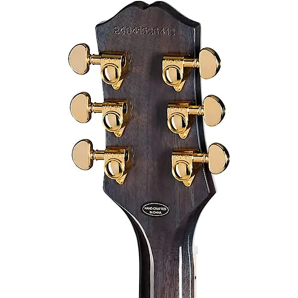 Накладка из эбена добавляет инструменту высокого класса изысканности как визуально, так и Тонально. Известная своей плотной, гладкой поверхностью, эбен обеспечивает легкое и быстое исполнение, при этом гарантируя исключительную ясность нот. Ее естественная яркость прекрасно сочетается с теплотой корпуса и грифa из махагони, создавая сбалансированную тональную основу. Перламутровые блоковые вставки и золотая окантовка дополнительно подчеркивают впечатляющий вид грифa, делая его яркой особенностью, которая идеально сочетается с верхней декой гитары из квилтованного махагони. Это премиальное дополнение обеспечивает долговечность производительности и высококлассную эстетику.