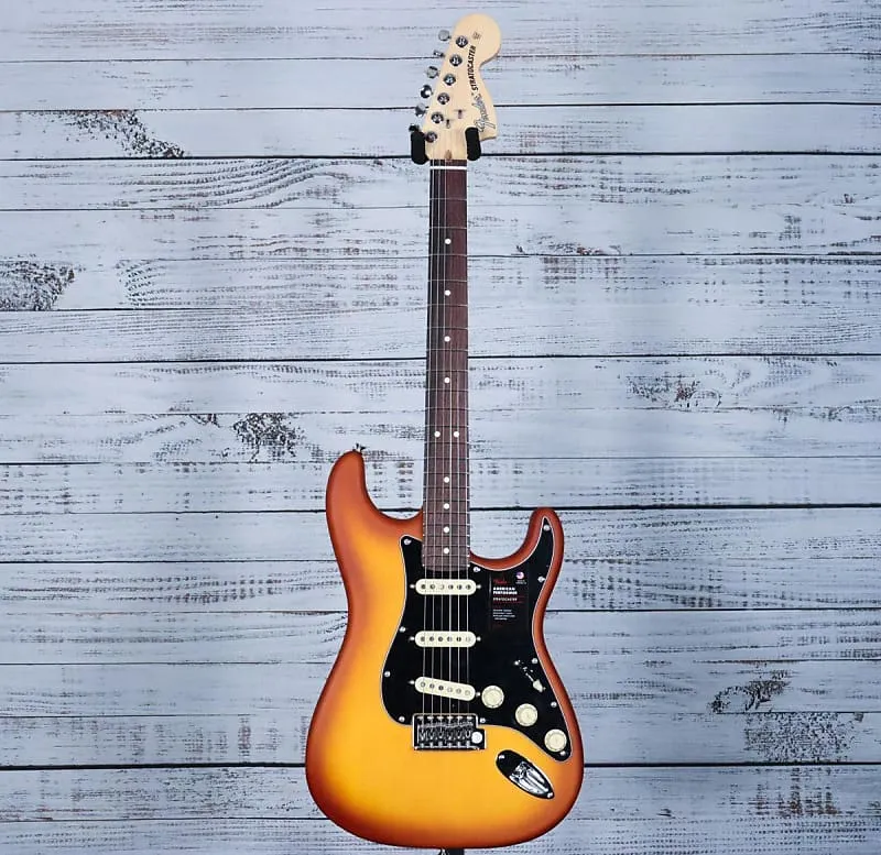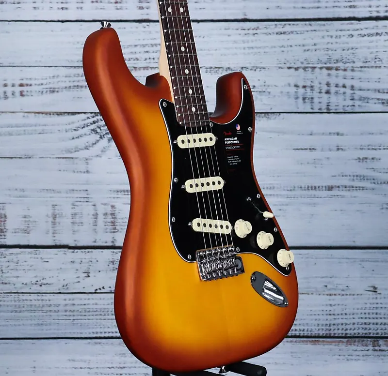 Родившийся в Коране, Калифорния, Fender Limited Edition American Performer Timber Stratocaster предлагает премиальное качество изготовления и универсальное звучание. Оснащенный сингл-койловыми звукоснимателями Yosemite с плоскими штырями и шеллачным покрытием, он обеспечивает богатое, выразительное звучание с контролируемой обратной связью. Контроль тона push-pull расширяет звуковые возможности, добавляя хамбакер на грифе в любом положении переключателя. Его гриф современной формы C с радиусом грифа 9,5” и 22 джамбо ладами обеспечивает комфортное исполнение и точное изгибание нот. Этот Stratocaster сочетает классическое ощущение Fender с инновационными функциями для профессиональных музыкантов.