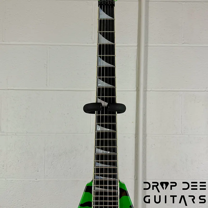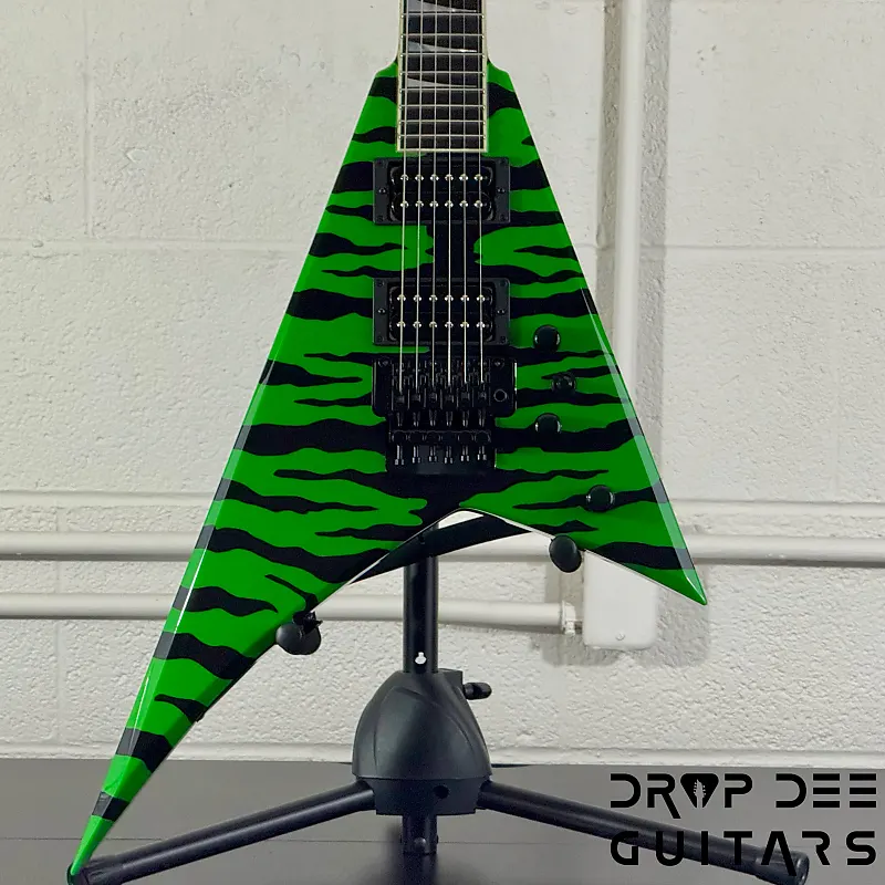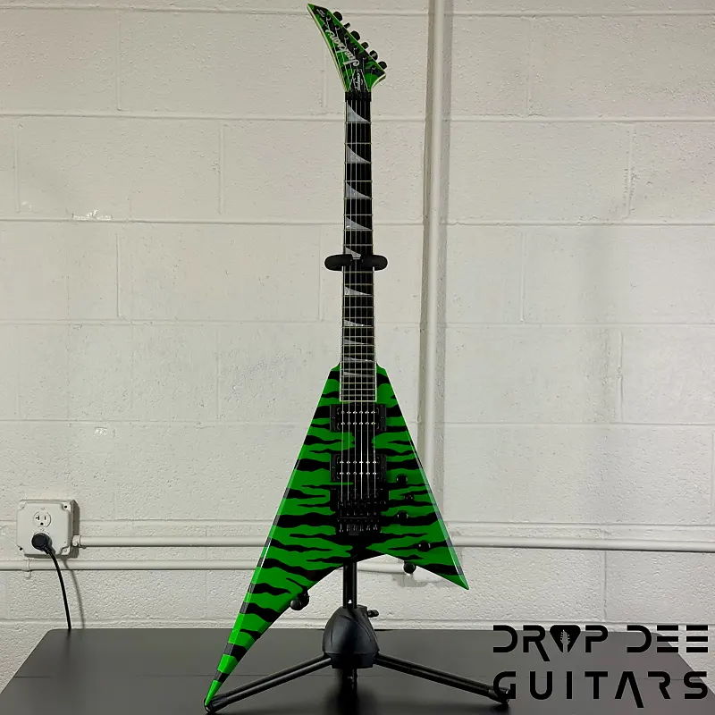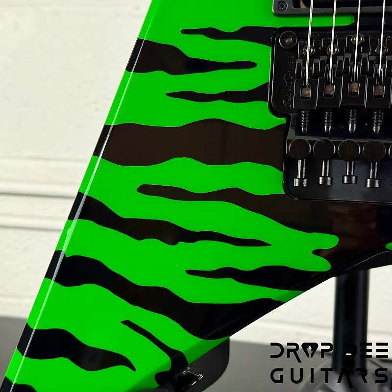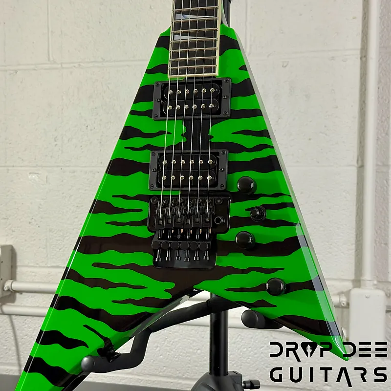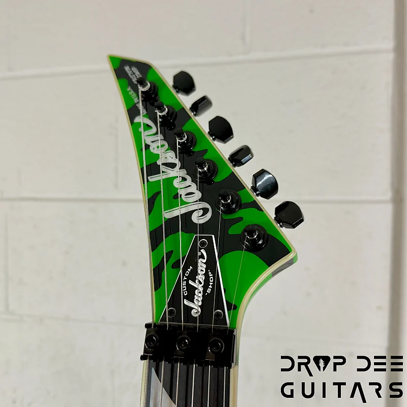 Состояние: Это совершенно новая Jackson USA Custom Shop Rhoads RR24 FR в цвете Slime Green Bengal. В комплект входит сертификат подлинности Jackson Custom Shop и кейс соответствующей формы Jackson Rhoads/KV. Также инструмент поставляется с нашей настройкой Pro-Tech, так что готов к игре сразу из коробки. Drop Dee Guitars является уполномоченным дилером Jackson Custom Shop.