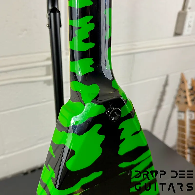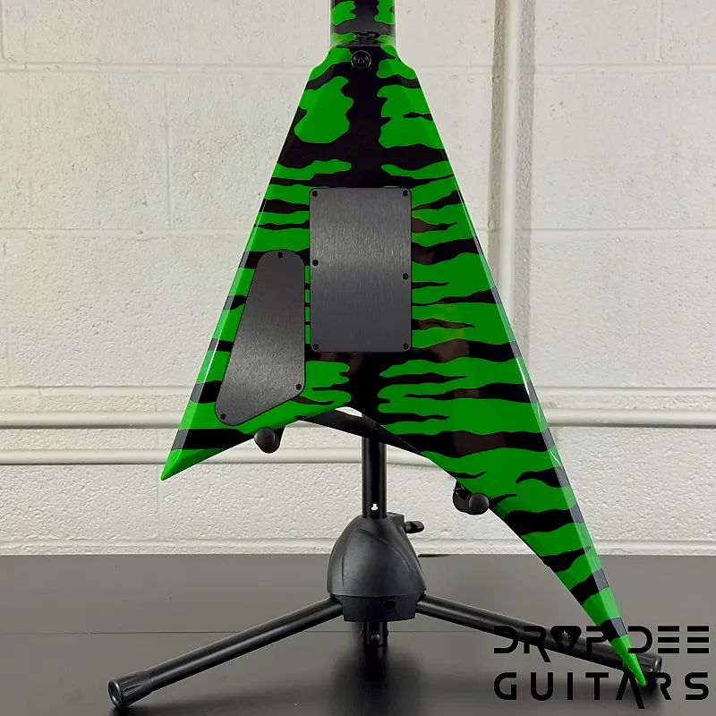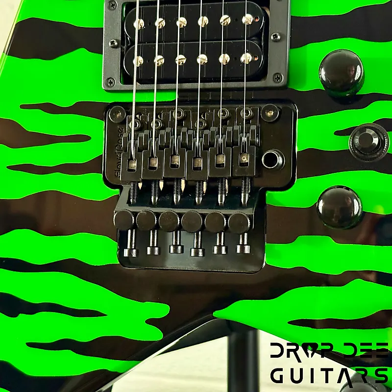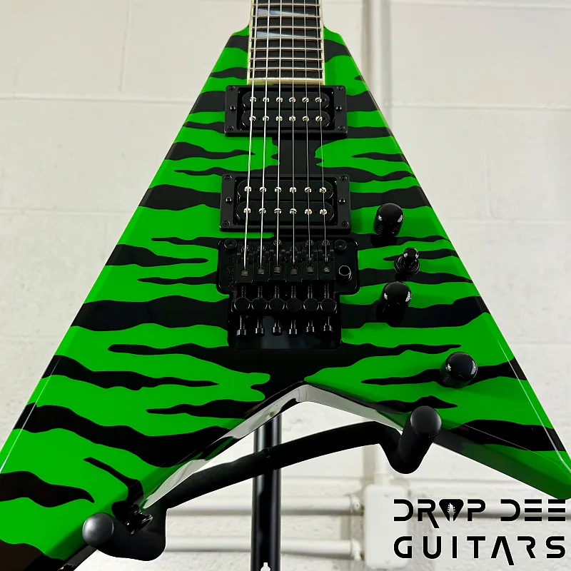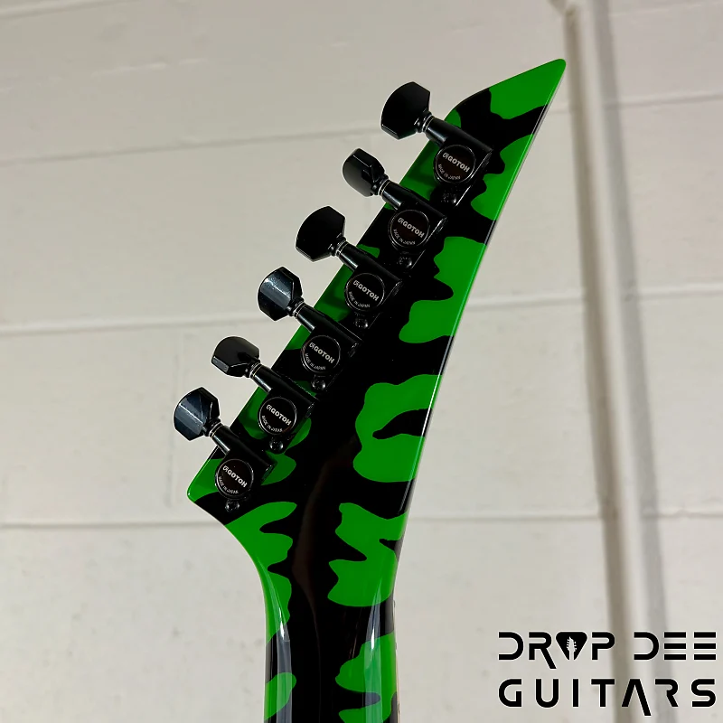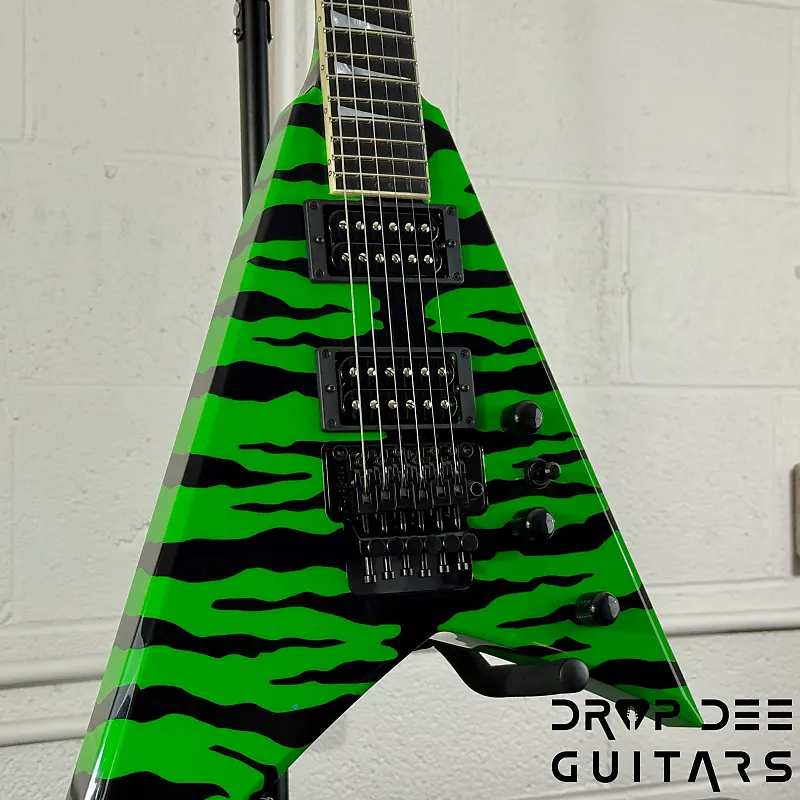 Состояние: Это совершенно новая Jackson USA Custom Shop Rhoads RR24 FR в цвете Slime Green Bengal. В комплект входит сертификат подлинности Jackson Custom Shop и кейс соответствующей формы Jackson Rhoads/KV. Также инструмент поставляется с нашей настройкой Pro-Tech, так что готов к игре сразу из коробки. Drop Dee Guitars является уполномоченным дилером Jackson Custom Shop.