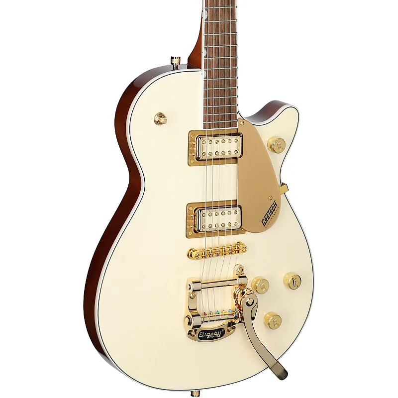 Двухцветные отделки с металлическими верхами и насыщенными тонированными корпусами и грифами, золотая фурнитура и звукосниматели FT-5E Filter'Tron с кремовыми вставками создают изысканную, простую роскошь, которая непременно привлечет внимание.