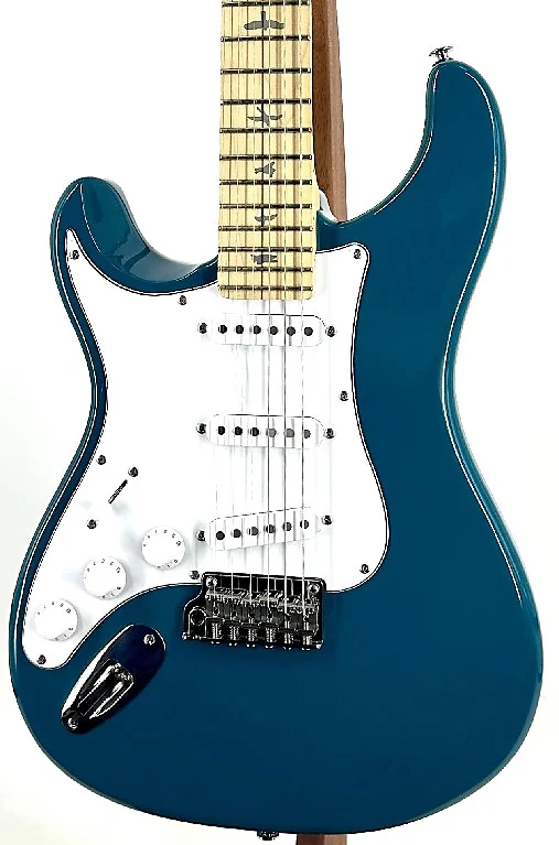 PRS SE Silver Sky Maple оснащена корпусом из тополя, съемной грифом из клена и грифом из клена с фирменными инкрустациями в виде птиц PRS. Гриф длиной 25,5” с 22 ладами имеет оригинальную форму 635JM и радиус грифа 8,5”, так что PRS SE Silver Sky будет приятно ощущаться в руках. Подключите ее к усилителю, и три одношпульные звукоснимателя 635JM «S» будут звучать ярко и выразительно. Гитару дополняют двухточечный стальной тремоло, костяной порожек синтетического происхождения и колки винтажного стиля. Другие особенности дизайна включают перевернутую головку грифа PRS Silver Sky и двухфункциональный анкерный стержень PRS (доступный с передней части головки грифа для удобства использования). Поставляется со струнами PRS Classic 10-46 и Чехол