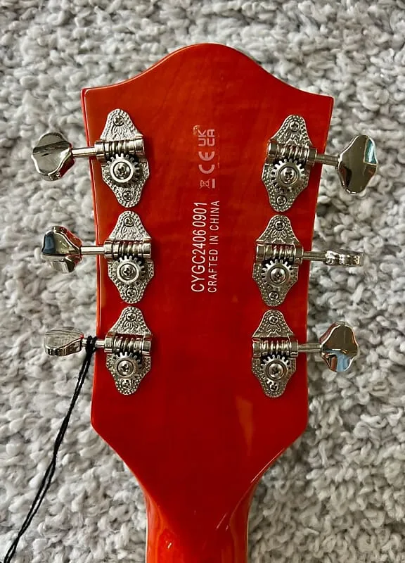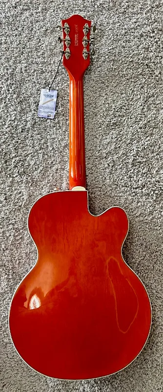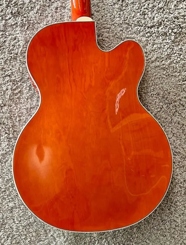 Этот великолепный инструмент представлен в эффектной отделке Orange Stain, дополненной серебристым пикгардом и никелевой фурнитурой.